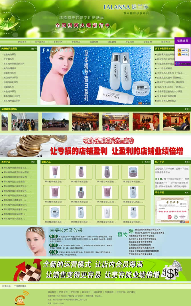 法蘭莎深植本土, 經過長期研究,特別針對東方女性膚質特 點,開發(fā)出不同系列的產品,能更好的起 到美白、保濕、抗皺等功效。